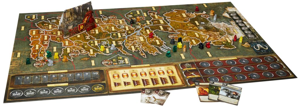 A Guerra dos Tronos: Board Game é o oficial, com mecânicas de controle de áreas e eventos narrativos. Suporta até 6 jogadores, focando em estratégia profunda.