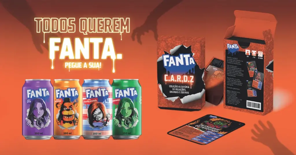 A campanha brasileira, “Fanta Halloween 2025 – Todos Querem Fanta”, adota o formato “comprou, ganhou”. Com R$ 15 em compras de Fanta em uma nota fiscal única, o consumidor leva um baralho exclusivo temático.